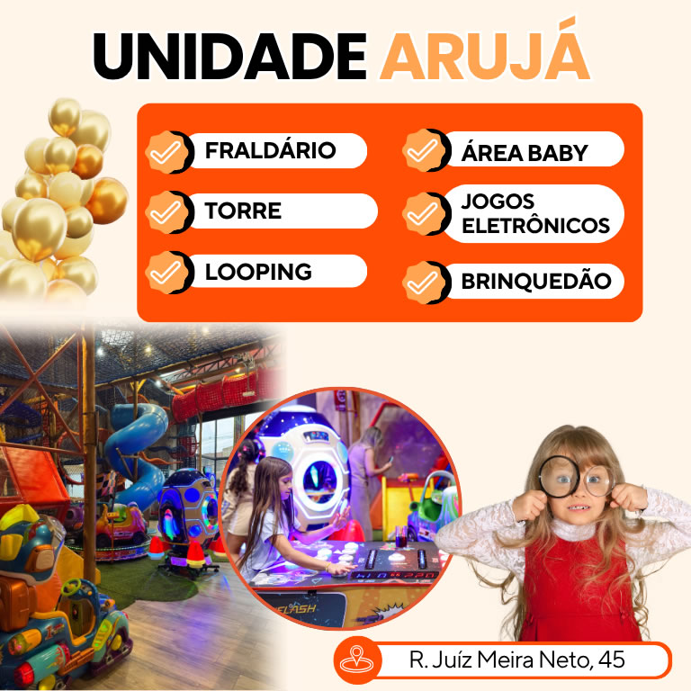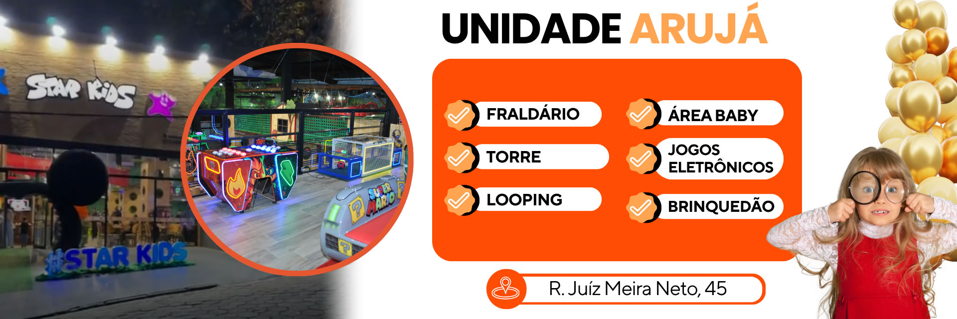 O Star Kids Arujá se destaca por oferecer uma experiência completa, com estrutura moderna, atrações que encantam as crianças e um ambiente pensado para o conforto de toda a família. Cada detalhe é cuidadosamente planejado para garantir praticidade, segurança e momentos inesquecíveis, permitindo que você aproveite a festa sem preocupações enquanto seus convidados vivem uma celebração especial do começo ao fim.